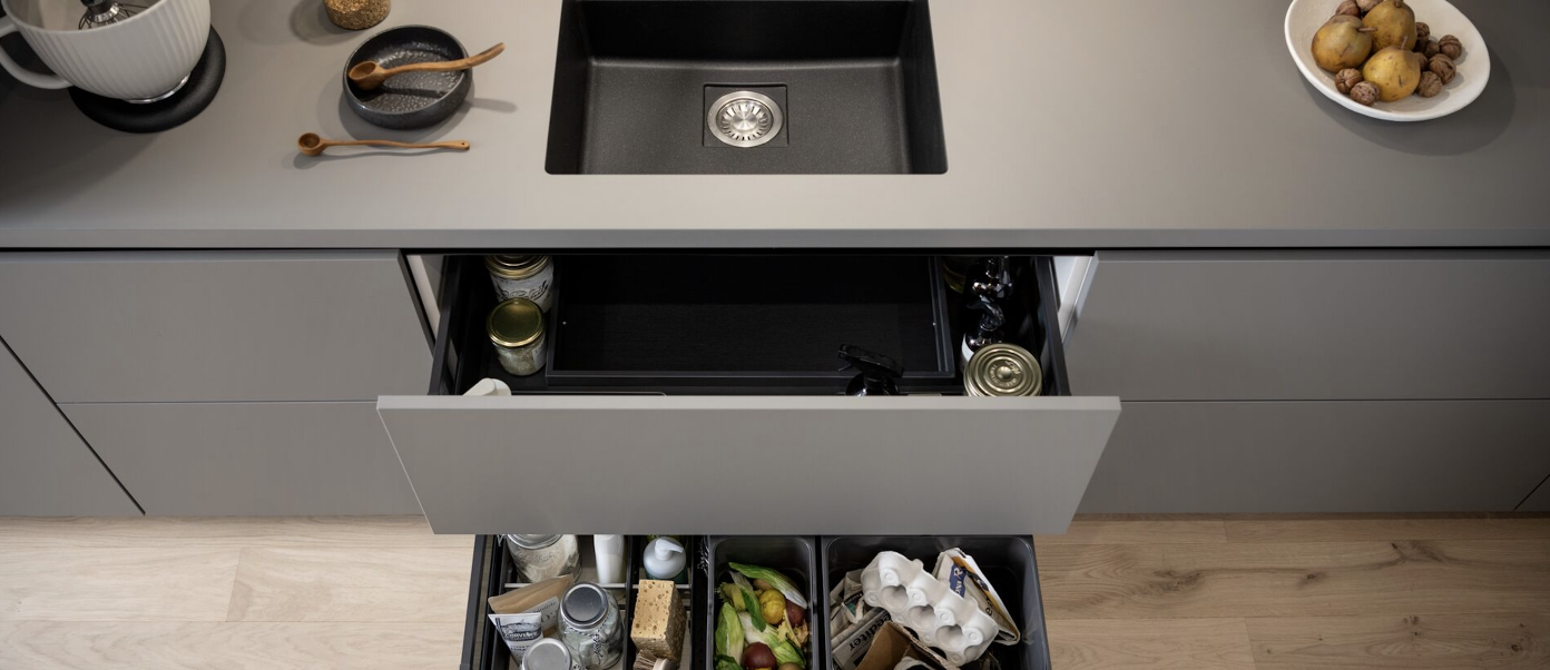 Les meubles de cuisine modernes s’adaptent aux besoins quotidiens : tiroirs profonds qui remplacent les placards bas, étagères coulissantes ou encore paniers d’angle pour exploiter chaque recoin. Cette modularité rend l’espace ergonomique et facilite le rangement comme l’accès aux ustensiles.